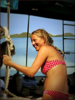 | Vreni enjoying the boat cruise through the Hidden Bay |