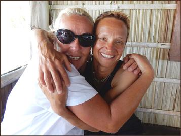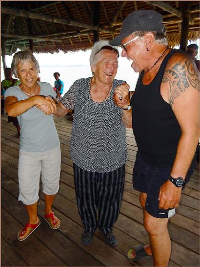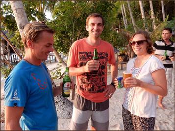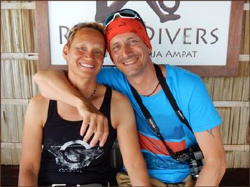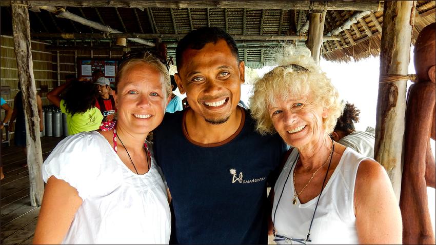 | Carmen & Vreni with Arif - he showed this two happy girls the beauty of Raja Ampats underwater world |