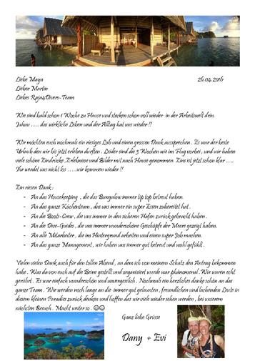 Vielen herzlichen Dank für diesen Traumurlaub! 1 Woche hier zu sein ist definitiv zu kurz! Da müssen wir einfach wiederkommen!