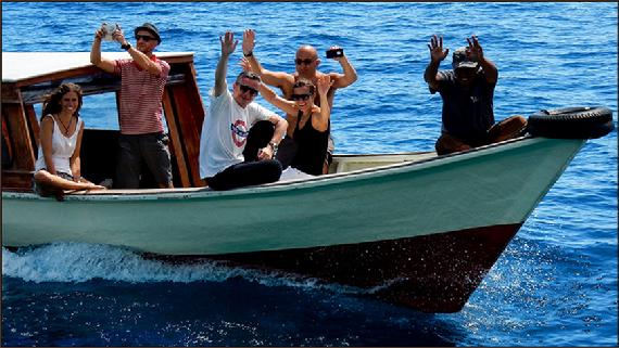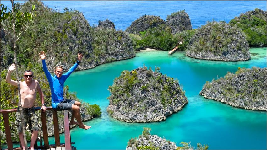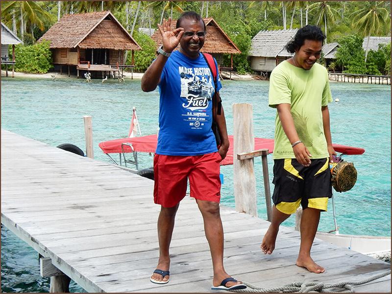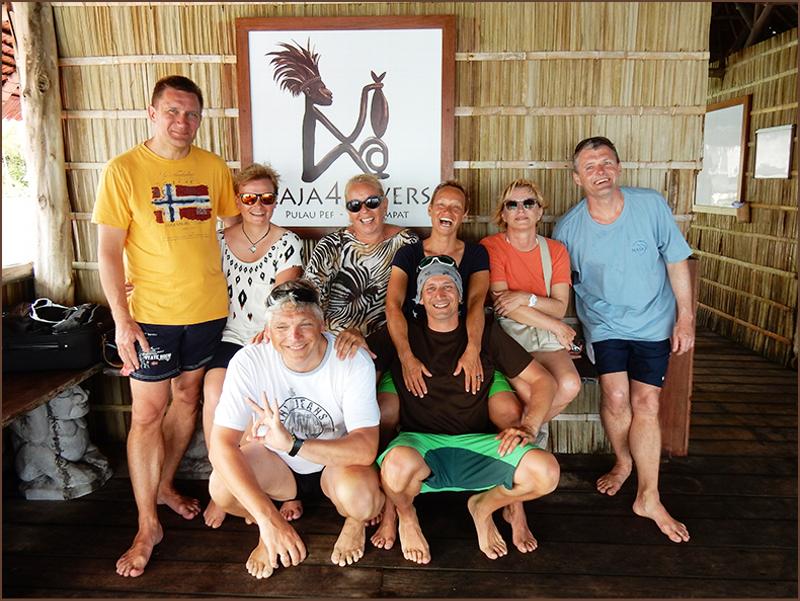 | Our departing Guests at their victory lap in front of Pulau Pef |