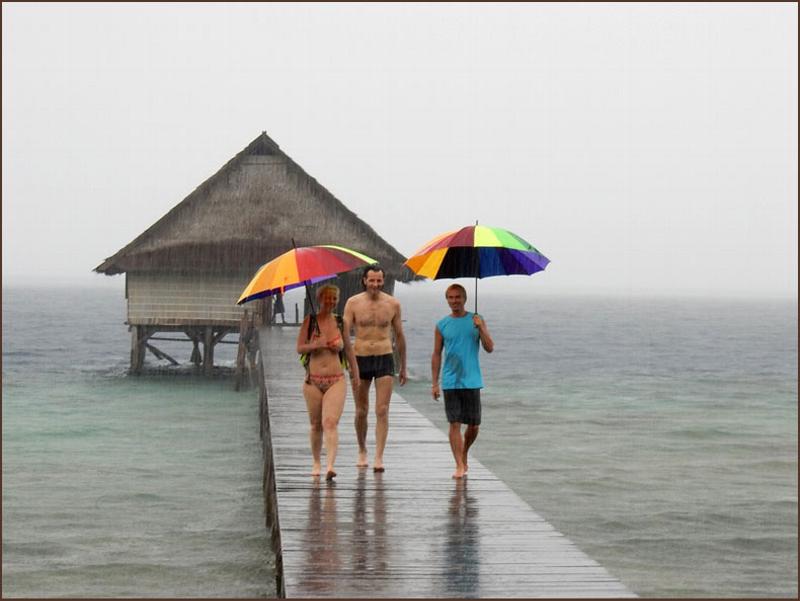 | Big smiles despite the (warm) rain. |