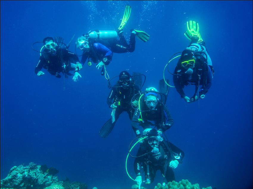 | Bea & Ernst, Vreni & Carmen with their guides Arif & Ronal - THE BIG BLUE |